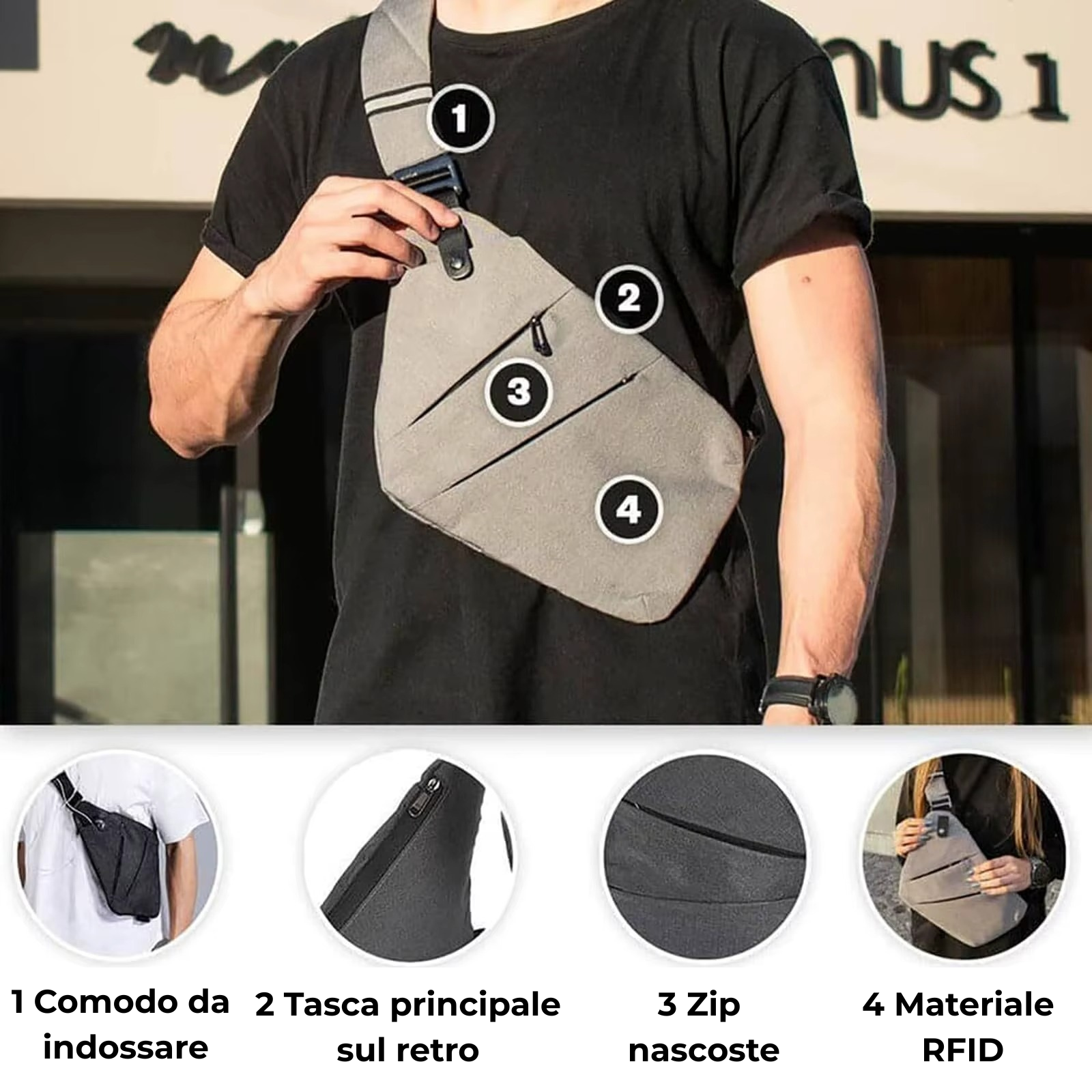 Scopri NOCTIS , la borsa tracolla antifurto pensata per chi vive tra città, viaggi e movimento continuo.